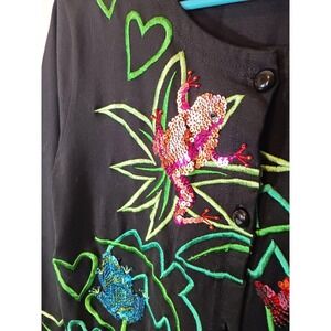 Michael Simon Event Cardigan Sweater Frogs Sequin Artsy Eclectic Size S