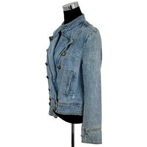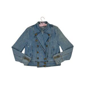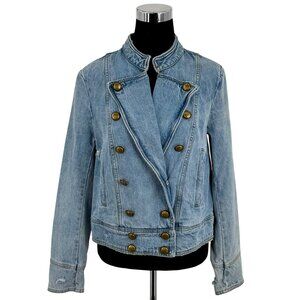 RARE Free People Military Motto Double Breasted Denim Jacket