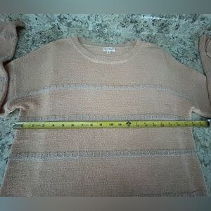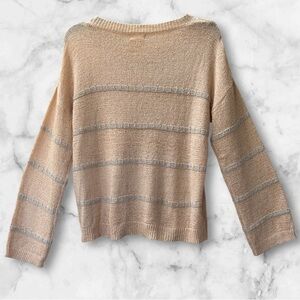 Hem & Thread Pale Peach Silver Accent Knit Long Sleeve Crewneck Sweater Size S