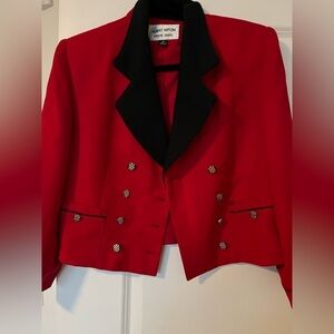 Albert Nipon Petite Vintage double breasted red blazer cropped