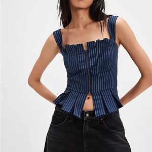 Navy. Size P. Used condition. It has pulled threads and a missing button on the back. 2nd button from bottom doesn’t snap, needs replacement. Needs some love, but is a classic!