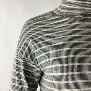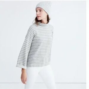 Madewell Sz XXS Note Funnelneck Knit Pullover Top Gray White 100% Cotton