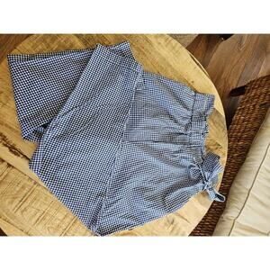Zara Basic Blue & White Gingham High Rise Paperbag Tie Waist Trouser. Size S