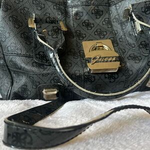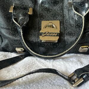 Y2K Style Guess black leather handbag with gold hardware