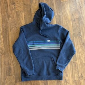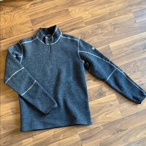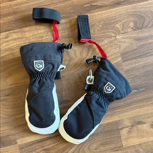Navy jacket with high collar. Ideal for skiing and snowboarding. Durable and stylish. Very warm, 3 in one. Inner puffer zips out, gortex outer. About 32” in length.
