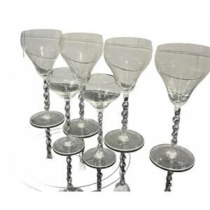 Vintage Handblown Twisted Stem Crystal Wine & Coupe Glasses Bohemia European 6pc