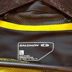 Dynamic Salomon vest featuring bold yellow trim. Ideal for active wear.