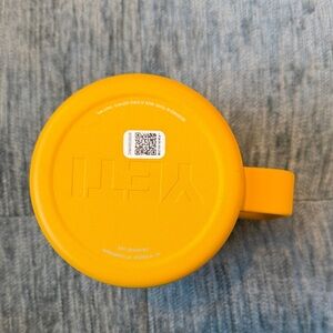 Bold yellow YETI mug featuring a sleek silver rim. Ideal for any beverage.