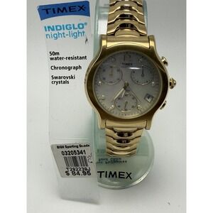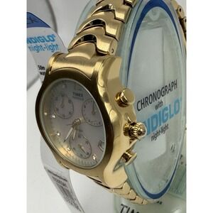 NEW TIMEX 20523 GOLD TONE LADIES WATCH CHRONOGRAPH SWAROVSKI CRYSTALS MOP
