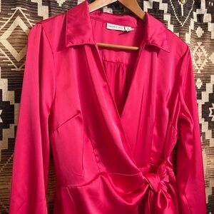 Sincerely Jules Hot Pink Silky Wrap / Tie Dress Size Large, High Quality, Preppy
