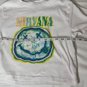 Nirvana Smiley Graphic T-Shirt, Child’s Size Large. In good pre-owned condition. No visible flaws.