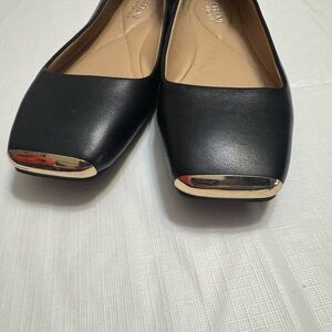 NWT Chic black flats by Alfani. Sleek design beautiful gold cap toe soft butter leather with a comfortable fit. Ideal for versatile wear. Neptoon non slip.