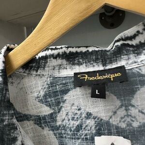 Unique and artistic, this lightweight jacket by Frédérique features a bold black-and-white circles and brushstrokes print. Designed with a structured collar, front button closure, and a relaxed fit, it’s perfect for adding a statement layer to any outfit. Made in Korea with a comfortable stretch blend.