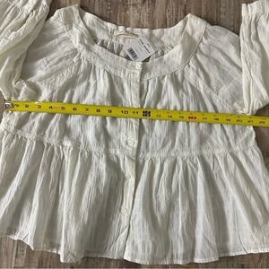FREE PEOPLE Sea to Shore Gauzy Peasant Top SZ Small Ivory Bohemian Light NWT
