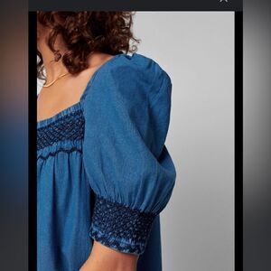 Crafted from 100% organic cotton, this cool top has puff sleeves and delicate embroidered detail. The most feminine elegant chambray. Each shoulder has snaps to control bra straps. Size XL, New with tags
