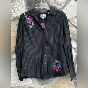 Panhandle Slim Womens Pearl Snap Western Shirt Sz L Embroidered Musician Rodeo