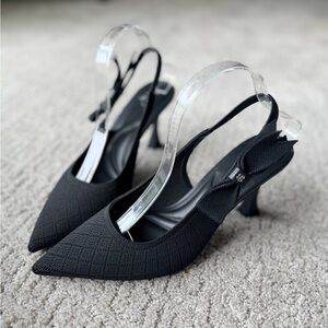 New Cosy Island EverLush Black Bowknot Pointed Toe Heeled Slingback Size 10