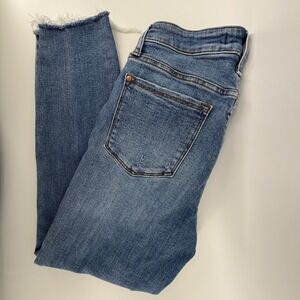 Keywords: denim, embroidery, distressed, raw hem, cropped, summer, casual, botanical, flower, mid rise, stretch denim