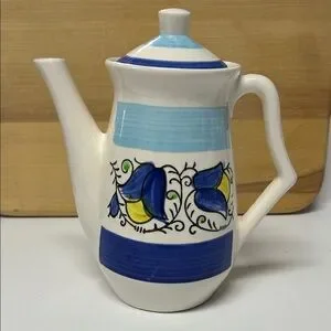 Vintage Bluebell hand painted ceramic teapot that was made in Japan. Blue and Yellow flowers with blue horizontal bands. No chips.