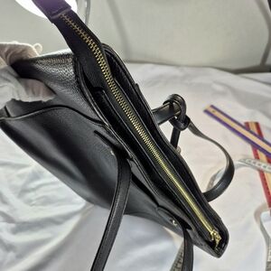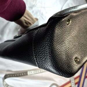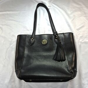 Anne Klein Black Faux Leather Lion Logo Tassel Tote Bag