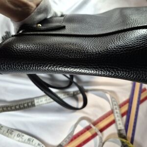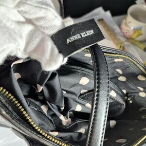 Carry your essentials in style with this elegant Anne Klein tote bag, a perfect blend of style and functionality. Crafted from black pebbled faux leather with gold-tone hardware, this bag features the signature AK lion logo medallion and a sophisticated hanging tassel charm. The structured silhouette and protective feet at the base ensure durability and a polished look for any occasion, from business to casual travel. The roomy interior typically includes a center zip divider, one back zip pocket, and two slip pockets to keep you organized on the go. This piece is a classic, timeless accessory for the modern woman.