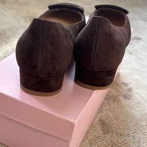ANN MASHBURN Buckle Shoe Dark Brown Suede Heels