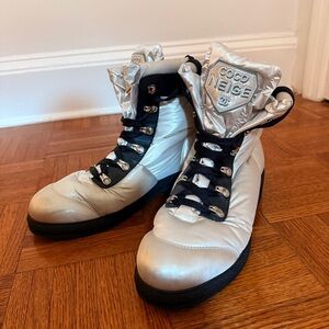 Stylish dark blue jeans. Classic trouser fit. Perfect for casual wear or can dress up. Gently worn, no visible signs of wear. Length is long, I am 5’9” for reference and they just touch the ground. Low rise and loose fit.