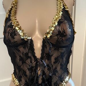 Frederick's of Hollywood Black and Gold Sequin Teddy