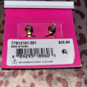 Adorable cat earrings with white and pink details. Adds a fun flair to your style. Pierced earrings. Cat head is the front and body in the back of the ear