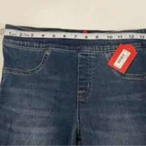 Experience the perfect blend of comfort and style with SPANX Blue Jeggings. These jeggings feature a stretchy, form-fitting design that offers a sleek, modern silhouette. The versatile medium indigo blue color makes them an essential addition to any wardrobe.