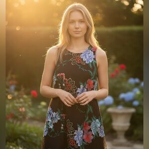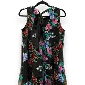 Beige by eci Black Embroidered Floral Sheer Swing Dress | Size Medium