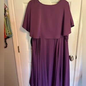 Elegant purple midi dress. Features a flowing cape overlay. Torrid 20 crimes of Grindenwald/ Harry Potter dress