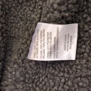 Black insulated canvas work wear vest with gray sherpa lining by Lee Premium Select. New with tag still affixed and in perfect condition. Deep lined hand pockets, single zip chest pocket, and interior chest pockets on each side with velcro closures. Extended tail in back to help keep your butt warm.
