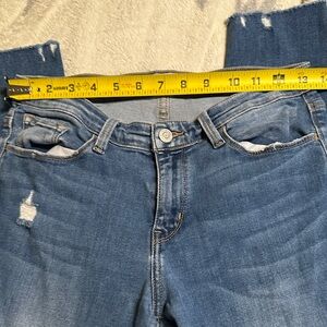 Trendy distressed design. Perfect for casual wear. Cropped ankle length.
