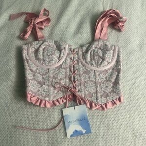 Pink lace crop top corset style size xs new with tags