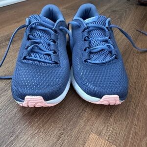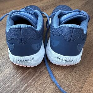 NWOT Women’s Size 8 Under Armour Charged Pursuit Navy and Peach Sneakers