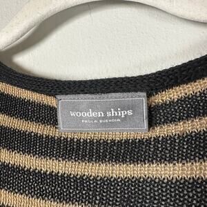Wooden Ships Black & Brown Cotton Blend Striped Knit Cardigan Size M/L