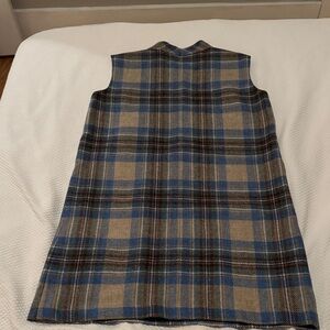 Chic plaid dress with blue and brown tones. Sleeveless design by Frances Valentine.