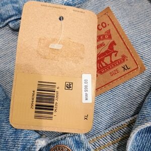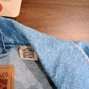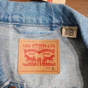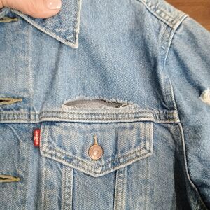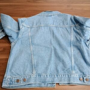 Classic Levi's jean jacket. Light blue denim. Button front closure. Two chest pockets.