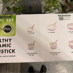 Enhance your kitchen with the GreenPan Blush Pink Cookware Set. This limited edition set features a healthy ceramic nonstick surface, perfect for easy cooking and cleaning. The elegant pink color adds a stylish touch to your kitchen decor. This is brand new in the box. Retails for $380 asking $280OBO.