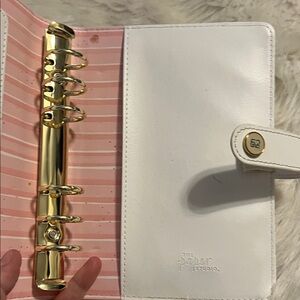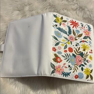 White planner with vibrant floral and bee design. Features a secure button closure. The paper studio brand white, super functional organizer.
