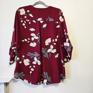West Kei Burgundy Floral Wrap Style Blouse Top Plus Size XL