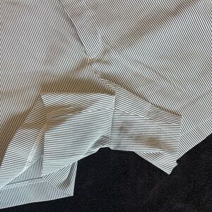 Beautiful quality striped shorts with pockets. Size 10. Generous side pockets, real back pockets. Fabric is a bit stretchy. Waist 17” measured flat. Rise 9” to base of waistband. Inseam 4”. 50 rayon, 24 nylon, 22 poly, 4 spandex. Non smoking home, fast shipper, 5 star seller.