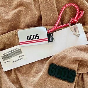 GCDS 70’s Gold Glitter One-Shoulder Bodysuit: