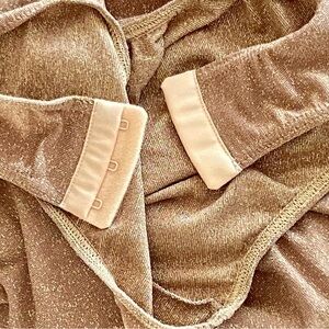 Elegant one-shoulder bodysuit in shimmering gold. Perfect for a night out or special occasion.
