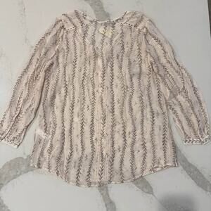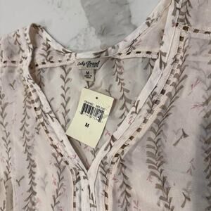 Lucky Brand NWT Semi Sheer Floral Beige Long Sleeve Tunic Blouse Women’s Medium