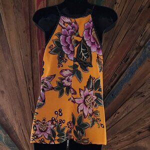 Farm Rio orange/purple florals side slits tunic/top/blouse Sz M