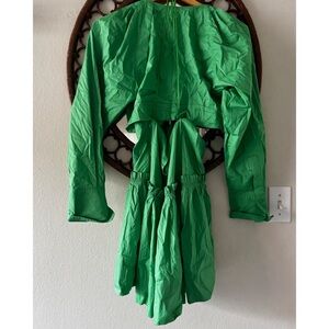 Jason Wu Cutout Waist Long Sleeve Deep Plunge Green Dress Size Small