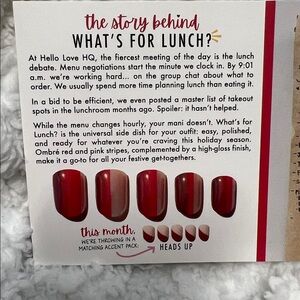 Every set comes with a cuticle stick, a dual sided mini nail file, small tube of glue. The nails are reusable if the directions are followed.