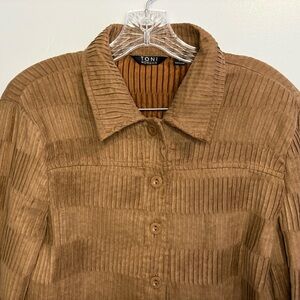 Toni Morgan Medium Chocolate Brown Jacket Button Down Pleated Collared Patterned